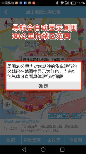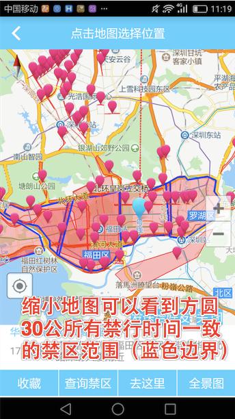 我们有两个查询方式:第一:“周边”——“禁区查询”;第二,用户直接在地图上查询;