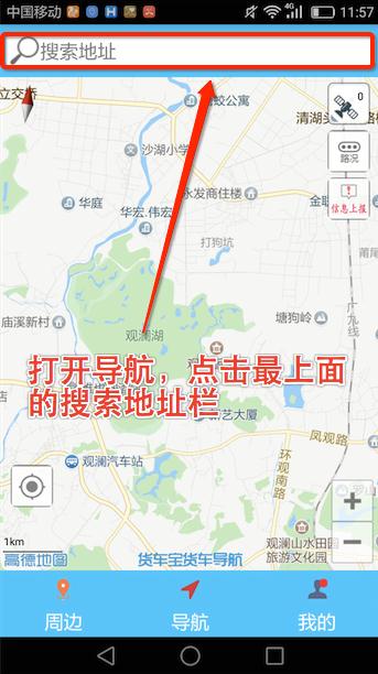 1、首先打开导航,放大地图,找到华强北的大概位置,轻轻点一下,出现蓝色点