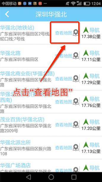 二、搜索具体地址查询禁区。我们还以深圳市华强北为我们的查询禁区的目的地。
